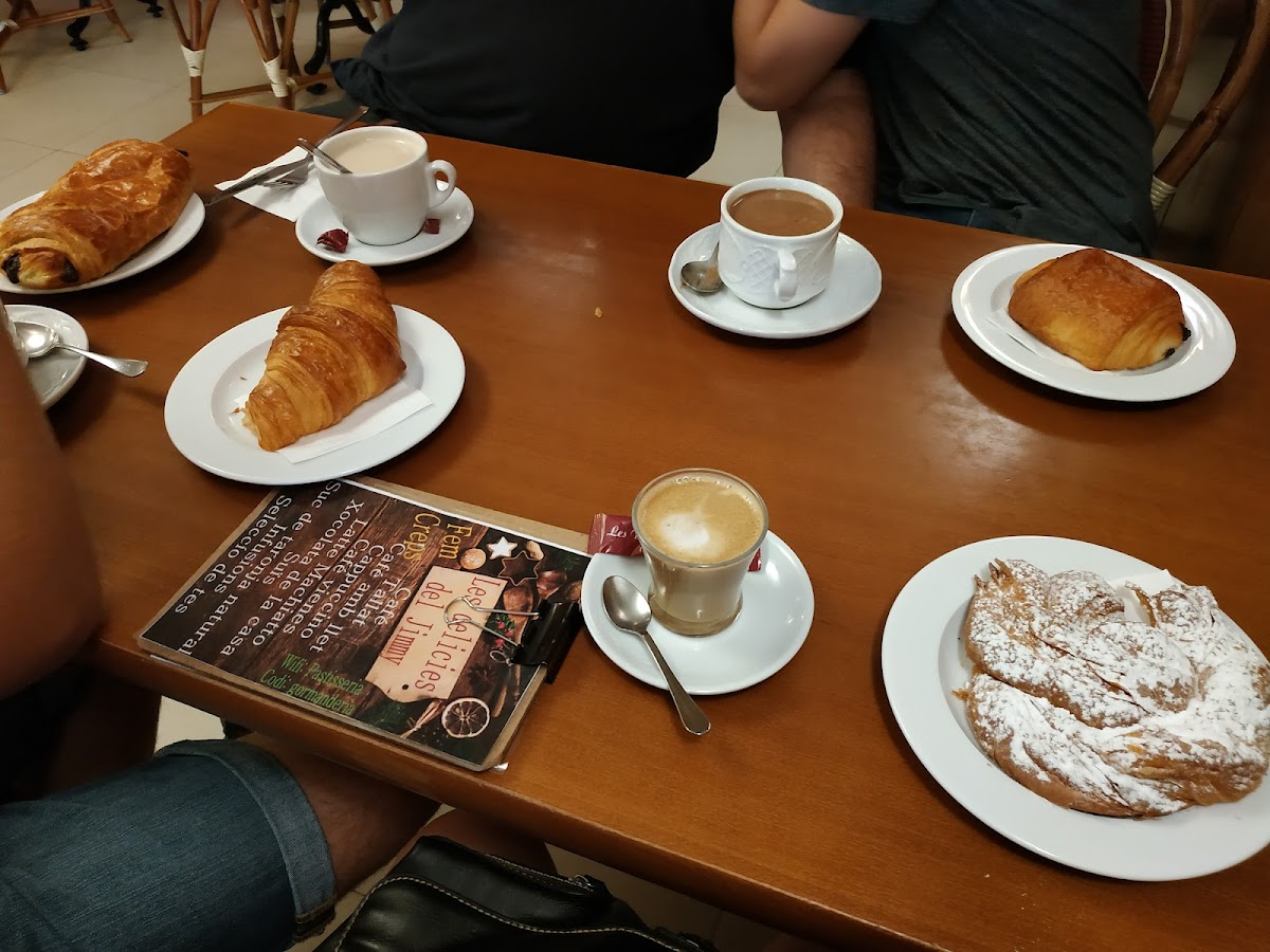 For breakfast or a mid-day pick-me-up, the Desayuno Chocolate Y Café Con Leche is a must-try. Pairing a rich hot chocolate with a creamy café con leche makes for the perfect start to your day. If you're more of a coffee person, Les Delícies Del Jimmy also serves a range of exceptional coffee options, like their robust Café Expresso and smooth Café Crème Et Biscuit Palmier, the latter offering a delightful blend of sweetness and richness with a side of buttery biscuit.